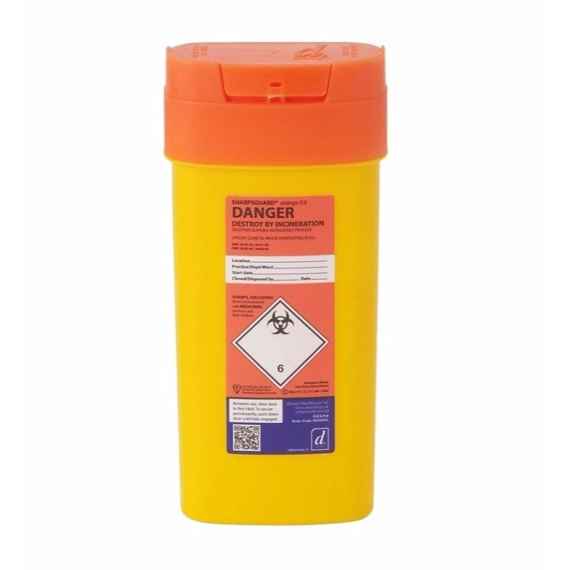 The Sharpsguard sharp bins are ideal for the safe and appropriate disposal of sharps including; syringes, needles, cannulas, catheters, winged infusion sets and stitch cutters. Each bin is correctly labelled with the appropriate incineration labels for safe disposal. Once the bin is full it can be securely locked and disposed off at your local pharmacy or suitable collection point, which may vary from location to location.