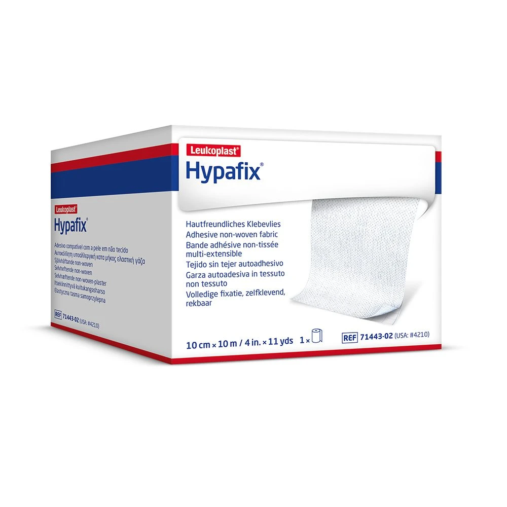Previously known as Fixomull in the UK, Hypafix is a premium quality retention bandage used in the hospital environment for securing dressings and appliances to the skin. In the physiotherapy clinic fixation tapes like Hypafix are also used to protect tender or vulnerable areas particularly the knee and shoulders when they are being taped using zinc oxide tapes. These sports tapes tend to use strong adhesives, and Hypafix is used to protect the skin from contact with the adhesives. Hypafix is extremely popular as it is permeable to water vapour and tends to be unaffected by sweating. It is strong, but conforms well to body curves and isn’t dislodged by movement.