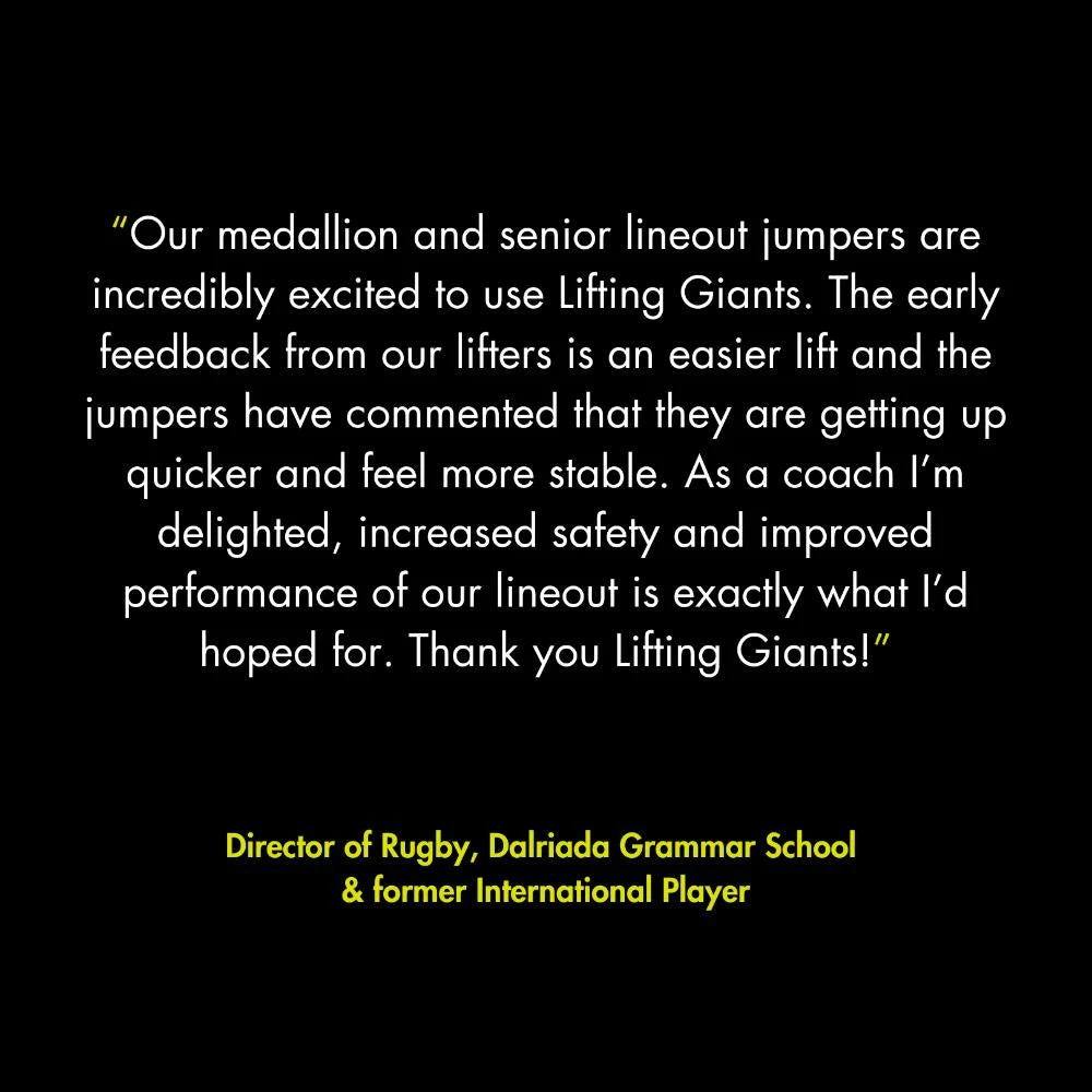 Unlike other lineout lifting solutions, Lifting Giants have been developed using anthropometric and ergonomic data. We collaborated with professional and grassroot rugby players to inform the product’s design and deliver optimum performance.