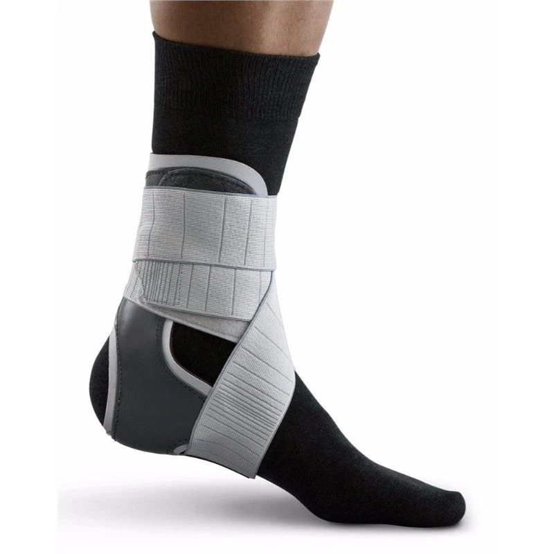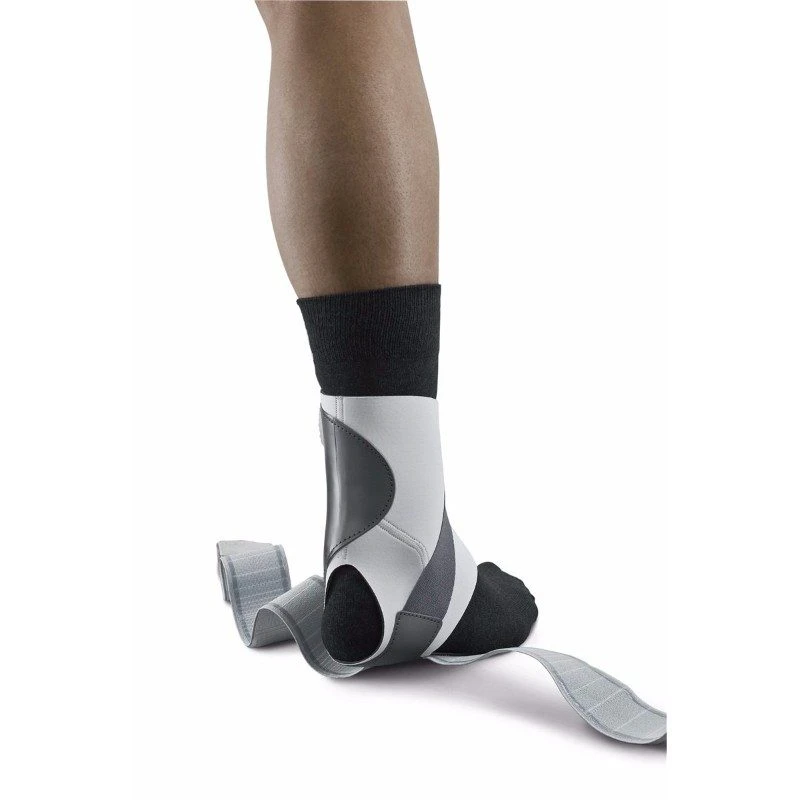The functional strap can be simply brought into position following the level of swelling in the acute phase. Since the brace offers adjustable compression by altering the two elastic straps individually, movement is properly restricted while appropriate freedom of plantar/dorsal flexion is permitted. This allows for normal movement of the foot when active.