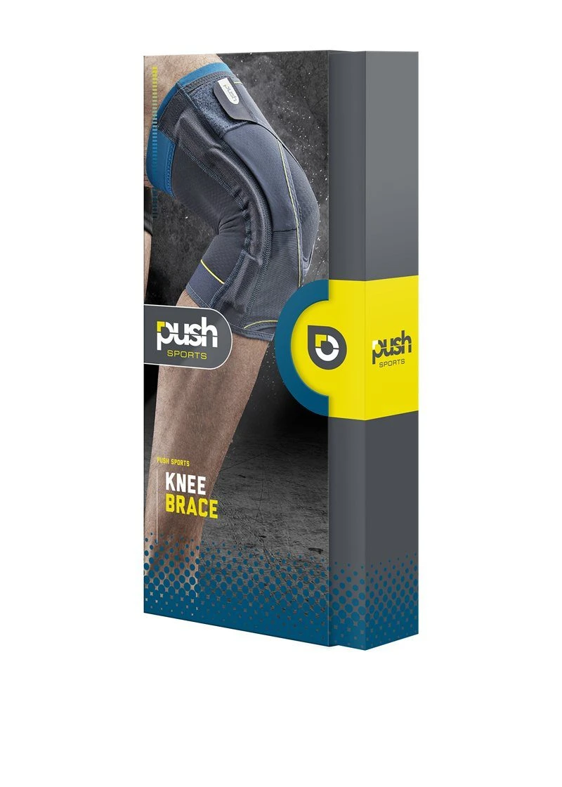 The Push Sport Hinged Knee Brace supports the collateral knee ligaments with two non-axial springs on each side of the knee acting as splints. These springs not only support the ligaments, but also prevent side movement of the knee joint. The U-shaped pressure pad is positioned around the knee cap to protect and help limit movement of the patella (kneecap) whilst maintaining comfort. This brace is comfortable to wear and is easy to put on.