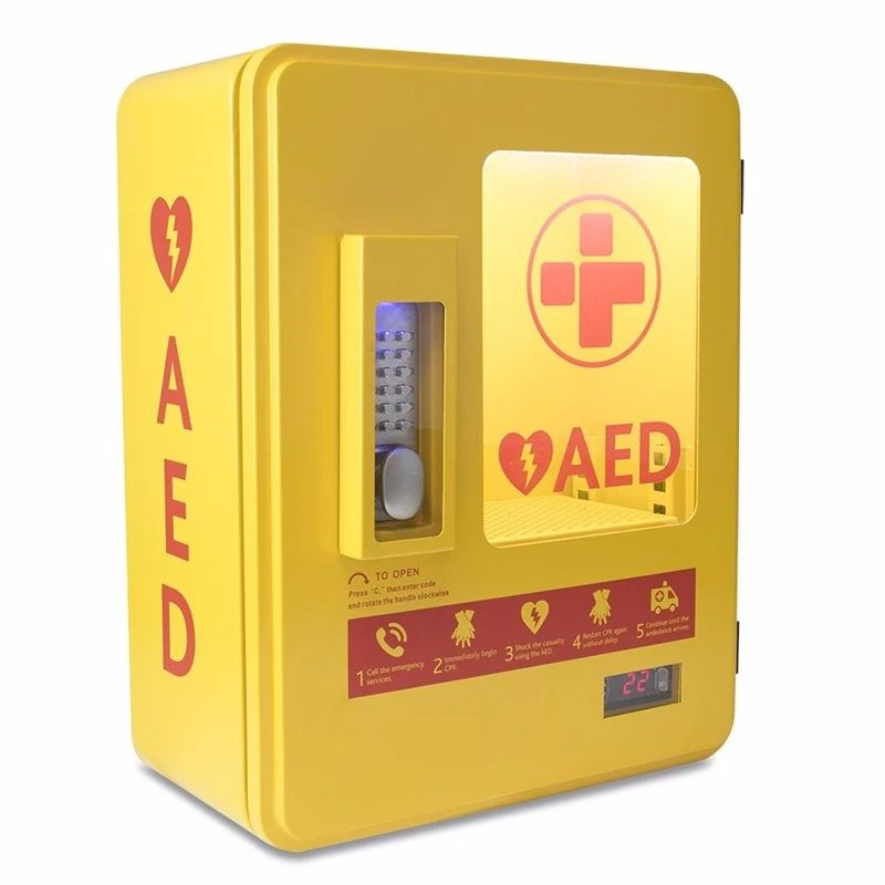 This AED wall mounting cabinet offers you security, practicality, high visibility, outdoor weather resistance and peace of mind in the event of an emergency.