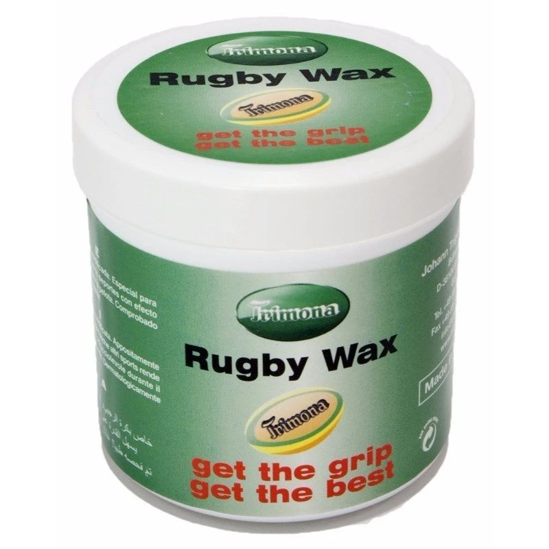 Trimona Rugby wax adhesive from Germany is a natural resin grip enhancer available as a 250 g tub. Also available as a spray, the tub formula is useful for scooping out larger amounts to create a tackiness on the hands and fingers.